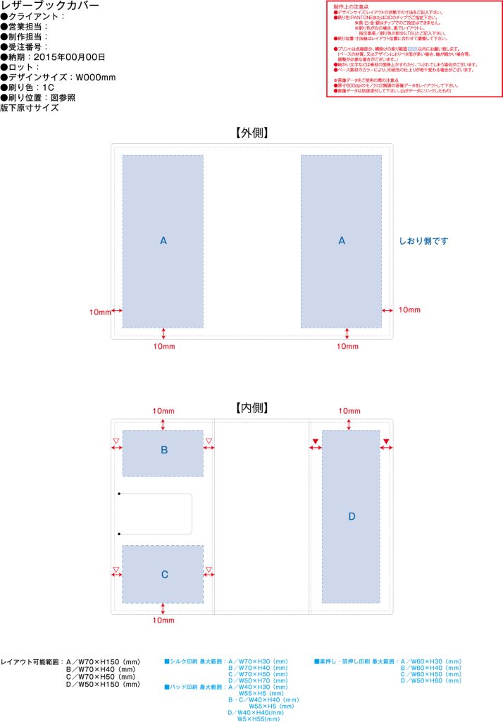 | 素押し・箔押し印刷範囲 | A / W60×H30mm 、B / W60×H40mm、 C / W60×H50mm 、D / W50×H60mm |